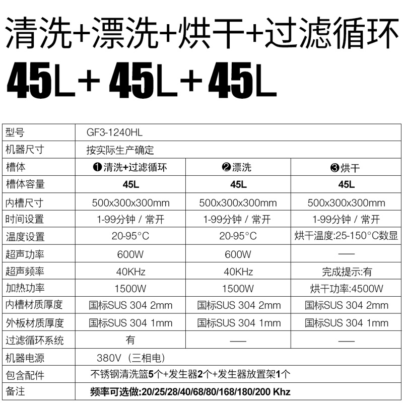 - 三槽工藝:超聲波清洗+過濾>漂洗>烘干其它等工藝可定制;