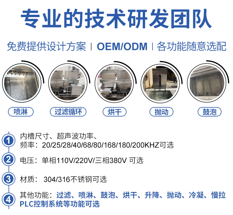 - 雙槽工藝:超聲波清洗+過濾+漂洗,烘干等工藝可定制