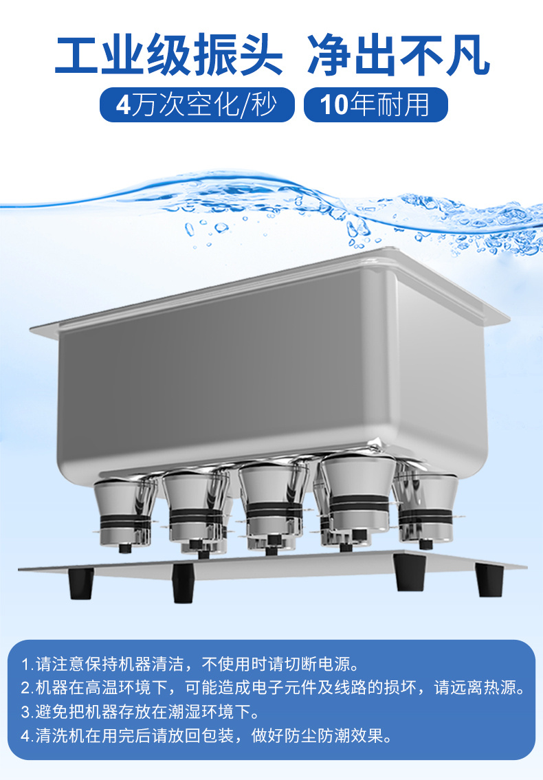 - 工業(yè)換能器: 采用工業(yè)震頭40KHz,力度強(qiáng)勁效果佳;