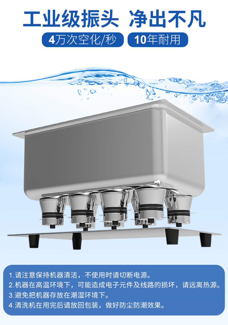 - 工業(yè)換能器: 采用工業(yè)震頭40KHz,力度強(qiáng)勁效果佳;