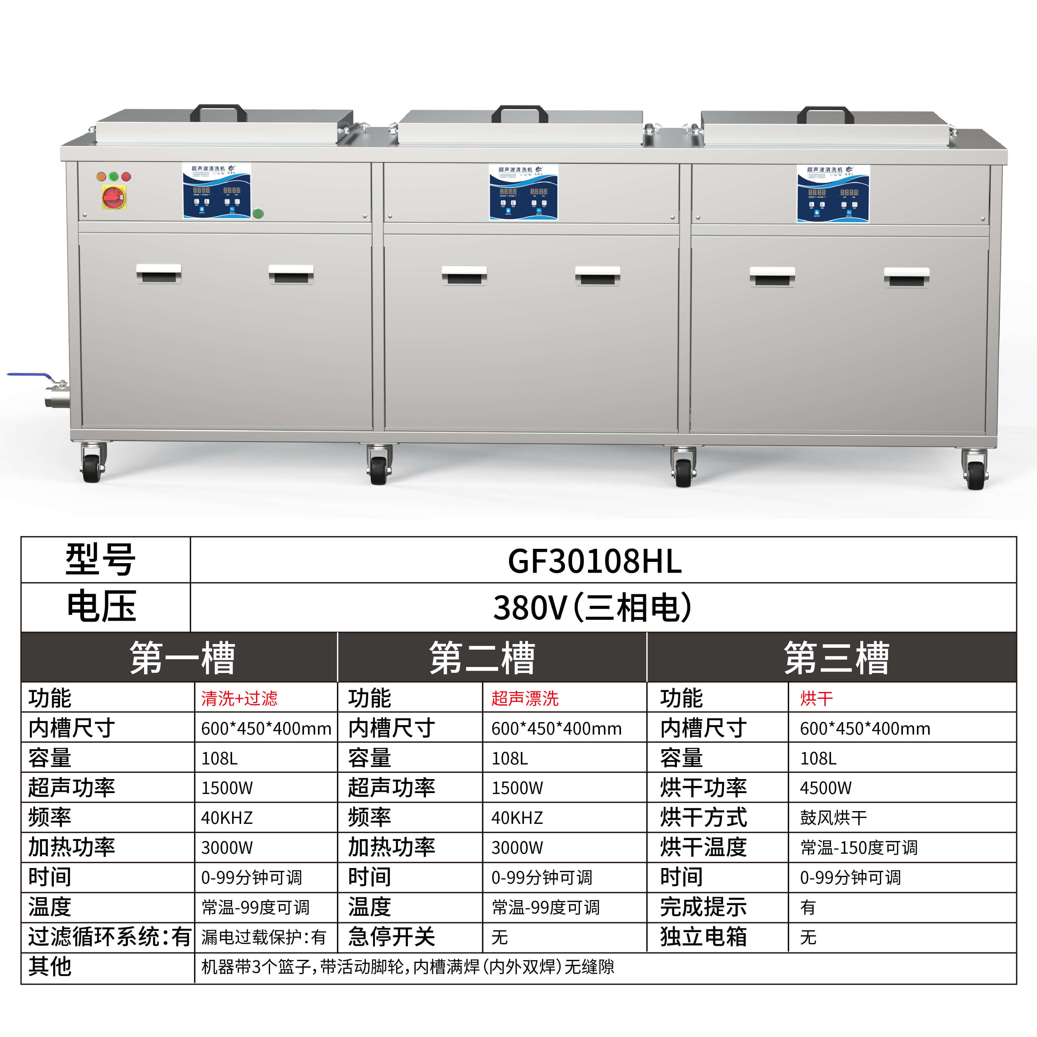- 第三槽烘干功率:4500W