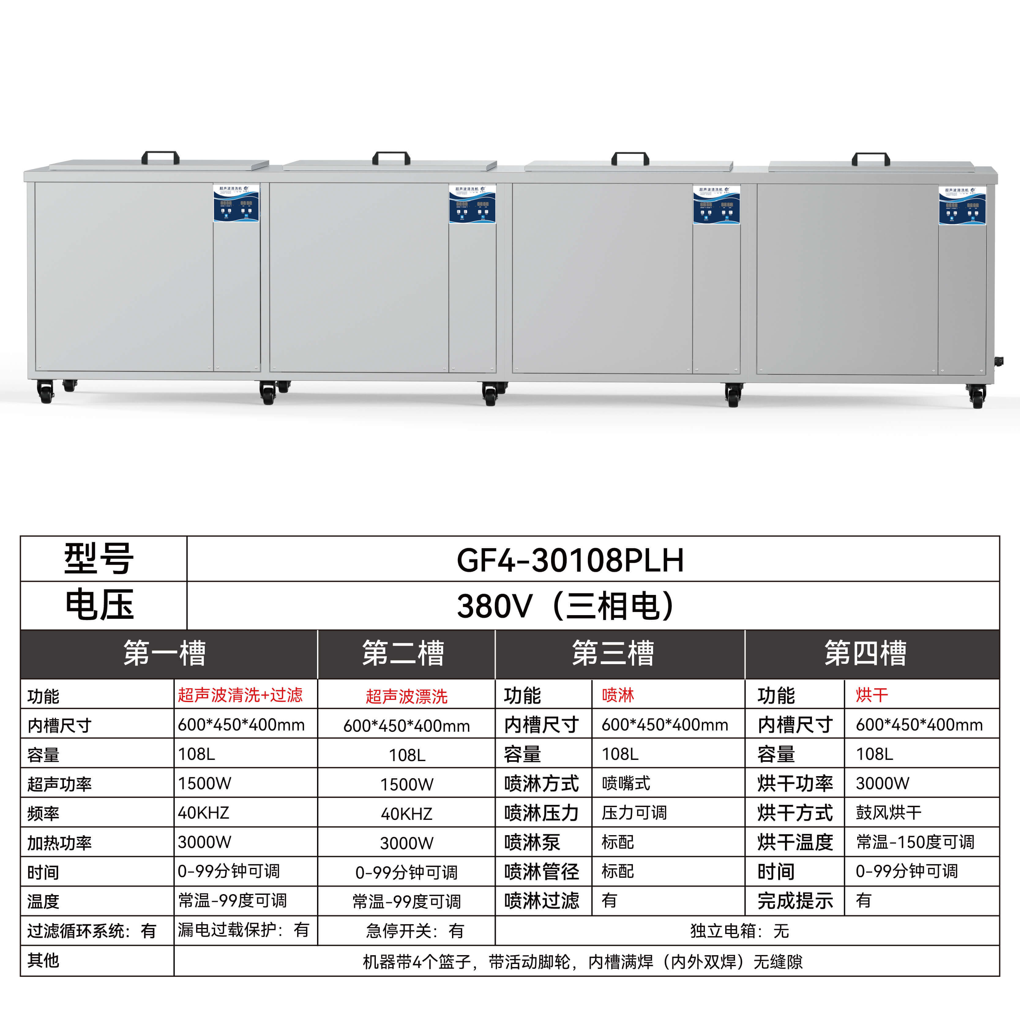 機器帶4個籃子,帶活動腳輪,內槽滿焊(內外雙焊)無縫隙