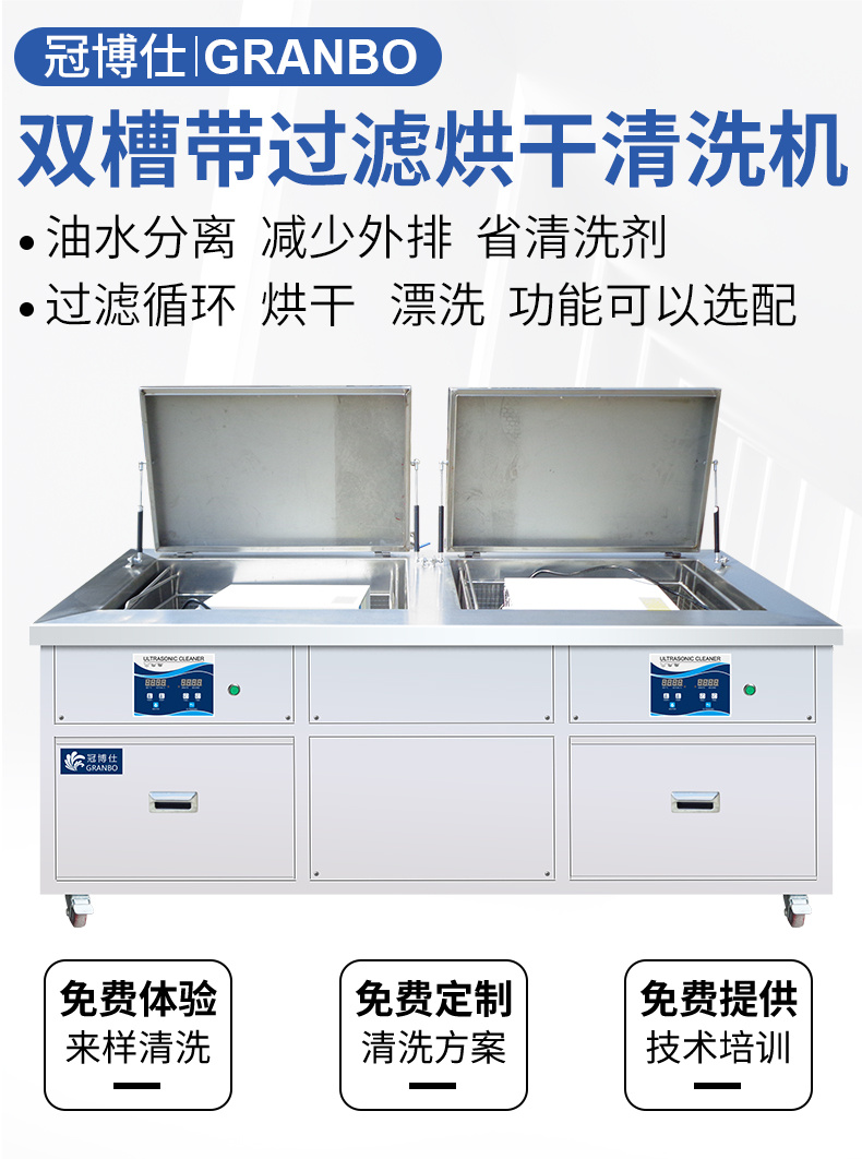 • 雙槽工藝:超聲波清洗+過濾+漂洗,烘干等工藝可定制