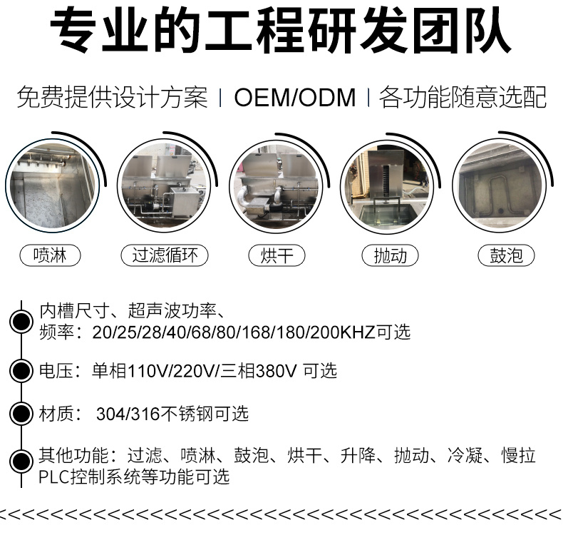 • 內(nèi)槽尺寸、超聲波功率、頻率:20/25/28/40/68/80/168/180/200KHZ
