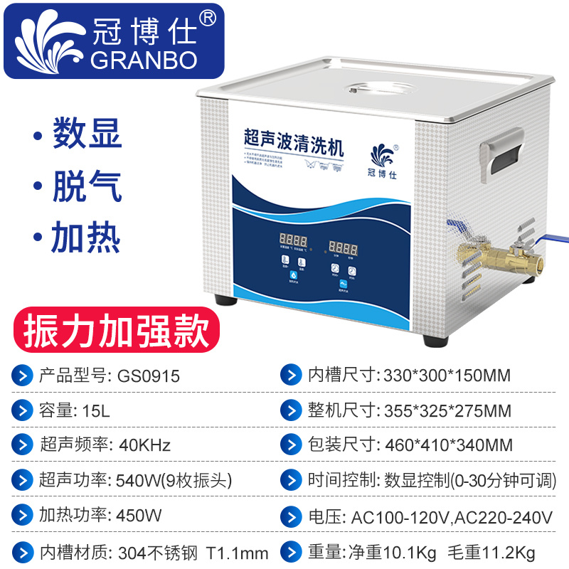 冠博仕GS0915超聲波清洗機(jī)|15L/540W|數(shù)顯定時(shí)調(diào)溫脫氣