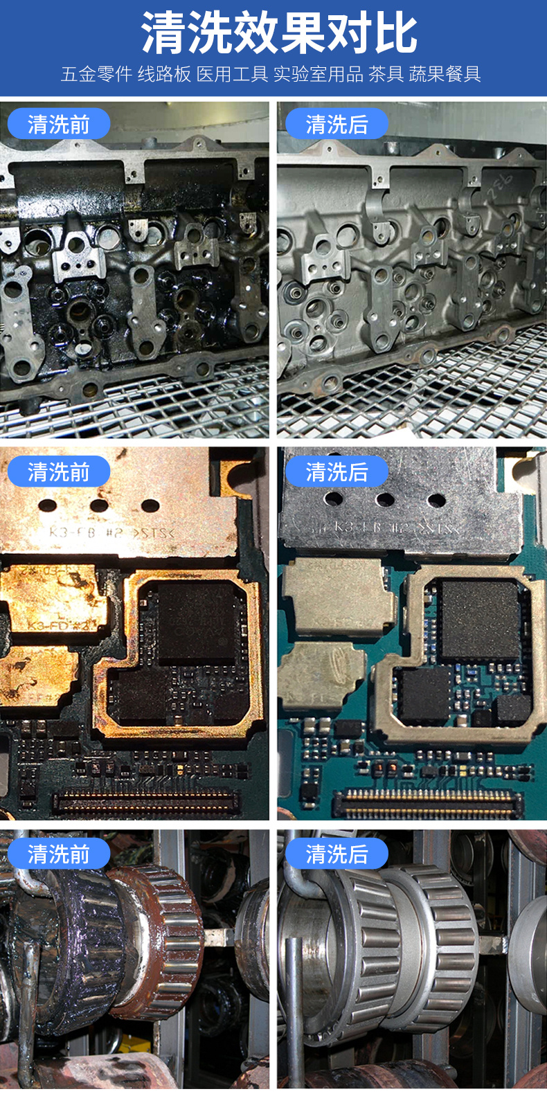 2.制造加工行業適用范圍:可除塵、除油、除銹、除蠟、除松香、除漆、除膠、除頑固污漬