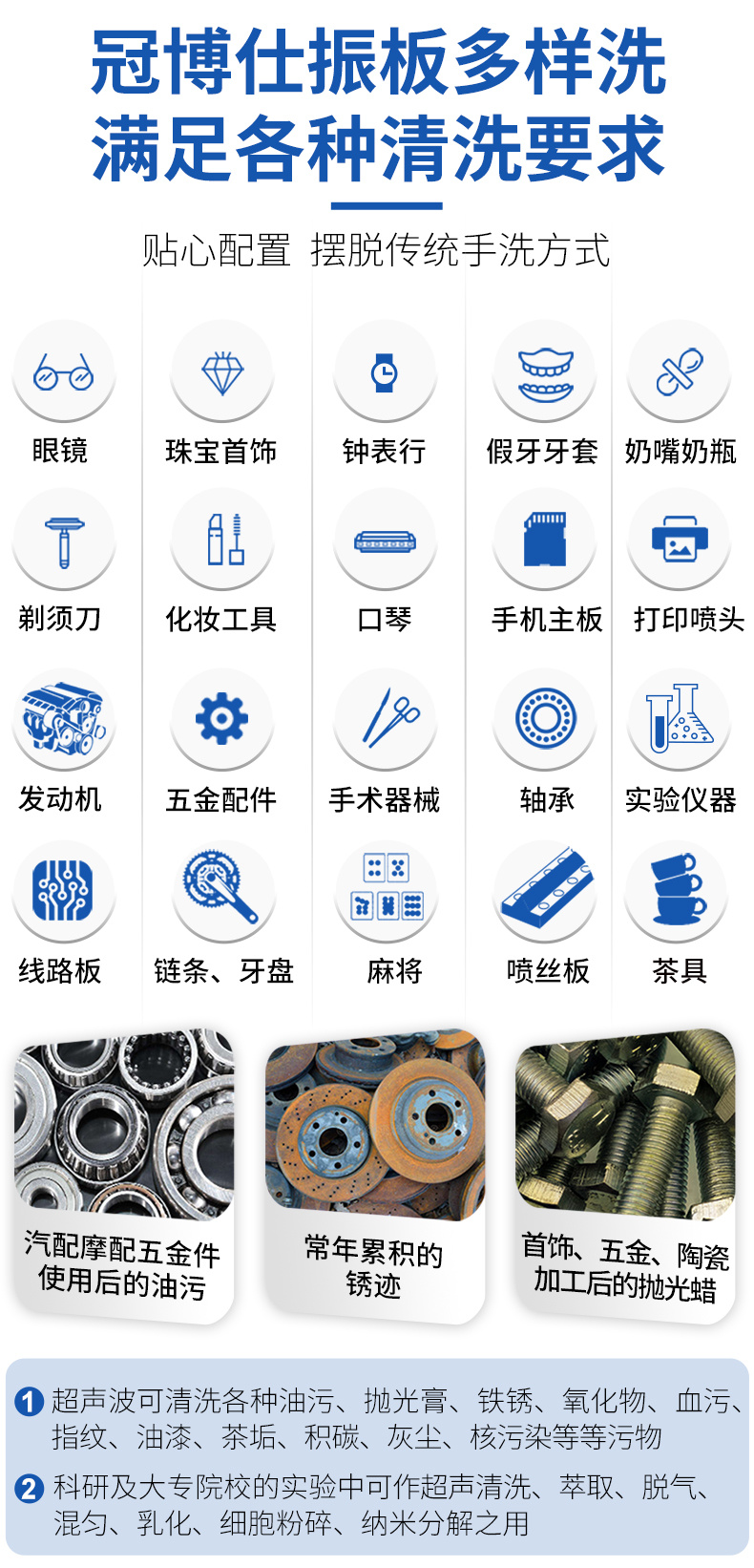 鐘表首飾行業:清除油泥,灰塵,氧化層,拋光膏等;