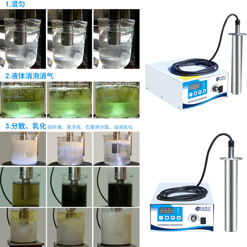 化工行業:超聲波乳化和均勻,超聲波凝膠液化,樹脂消泡,超聲波原油破乳;