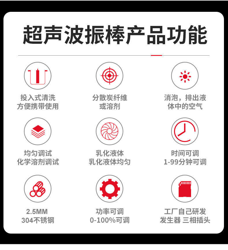 實驗室高校研究所應用:碳纖維分散擴散,化學溶液的攪拌、均勻、加速反應,細胞粉碎,產品粉碎,物質分散(懸浮液制備)和凝聚;